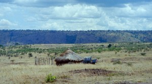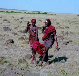 As we jolted back across the Mara grasslands we marked the pastoralists’ bleak brushwood corrals with their dung-plastered hump-backed huts; saw the distant red dots of herds boys’ shukas; heard the tinkling bells of shifting herds; watched the shaven-headed, much beaded women setting off on their long daily trek for water. And all of them seemingly at ease in the vast out there, walking each day where lion and leopard walk, fetching water, doing washing amongst crocodiles and hippos, sharing the grassland with elephants, buffalo and wildebeest. And all we could wonder was, how? How can they live here, so unchanging, while our world presses round and people like us come in droves on our own seasonal migrations?