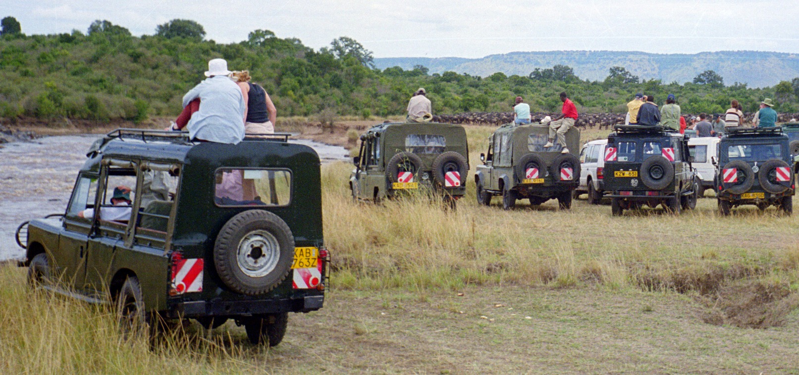 Our driver-guide, Sammy, had decided to take us to the famous river crossing where, over several days, tens of thousands of migrating wildebeest had been piling up, snorting and stamping on the dusty bank. For days they had been steeling themselves to make the seasonal Russian roulette dash that would take them over the river to much needed grazing.