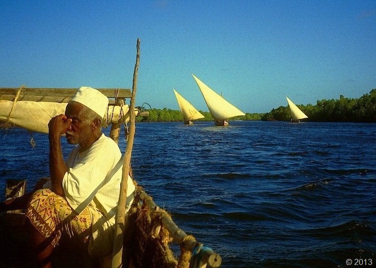 A storm blew up as we chugged across the strait in a Lamu fishing dhow. We tourists huddled under the awning to keep dry as the world turned steely grey. Our captain though, out in the rain, simply secured his hat and looked resolutely to shore. The rain did not last, and by the time we had put into Shela  harbour, the coral rag walls of the houses were steaming; scents of jasmine and frangipani filling the air. As we followed our guide up a sandy path from the shore, I remembered it was Christmas Eve. It seemed we had stepped into a dream.