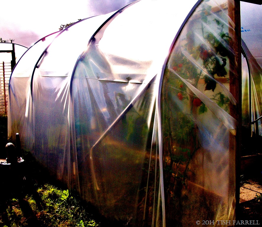Anyway, back in the early spring when I was clearing my plot I noted, with a severe pang of envy, that my neighbours, Bob and Sally, were making preparations to erect a fourteen foot long polytunnel. I could see it was hard work, with foundation trenches to dig (in the aforementioned concrete soil) and the frame to erect. I watched them toil, hanging doors, and making beds. Next, I watched as my other neighbours, Pete and Kate, followed suit. Their installation was even more hard work, being on a slope. It took them weeks to complete. In the meantime I kept the Team Leader posted as to these events, from time to time mooting the possibility of us having a tunnel; perhaps something smaller, I hazarded.