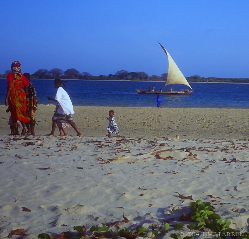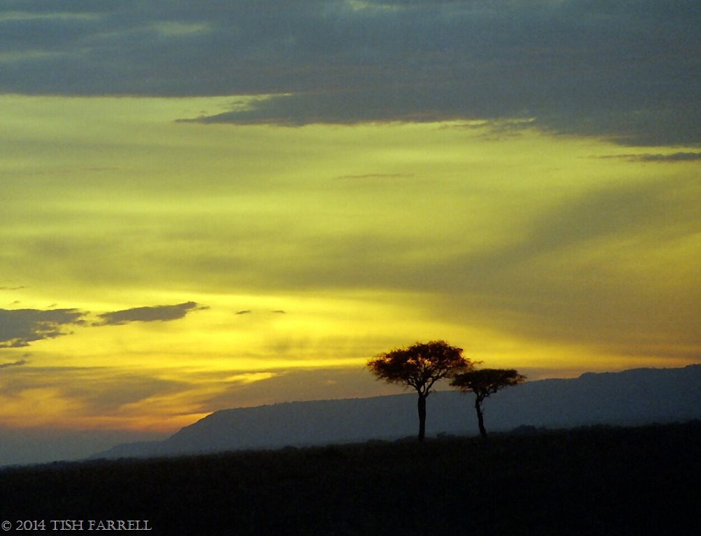 Then the singing starts, a nasal falsetto that resonates through time and space – the winds’ whine through Mara grasses.  The Maasai girls trip lightly into the firelight, their wraps like flames – yellow, red; close-cropped heads hung with beads; chins jutting forward as the crescent necklets – tiny beads so patiently strung – rise and fall on skinny chests.  The moran start to leap – higher, faster.