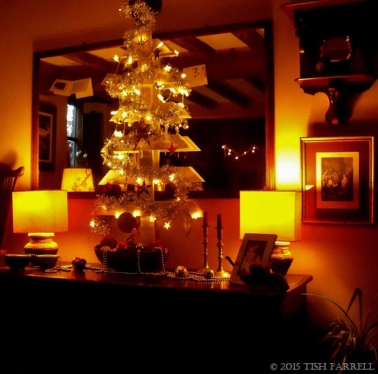 Of course I should not be snide about this most worthwhile of older-man pursuits, I whose allotment is the lucky recipient of pallet compost bins and several raised beds. Also at home this Christmas we have a festive pallet tree, and here it is in our sitting room…