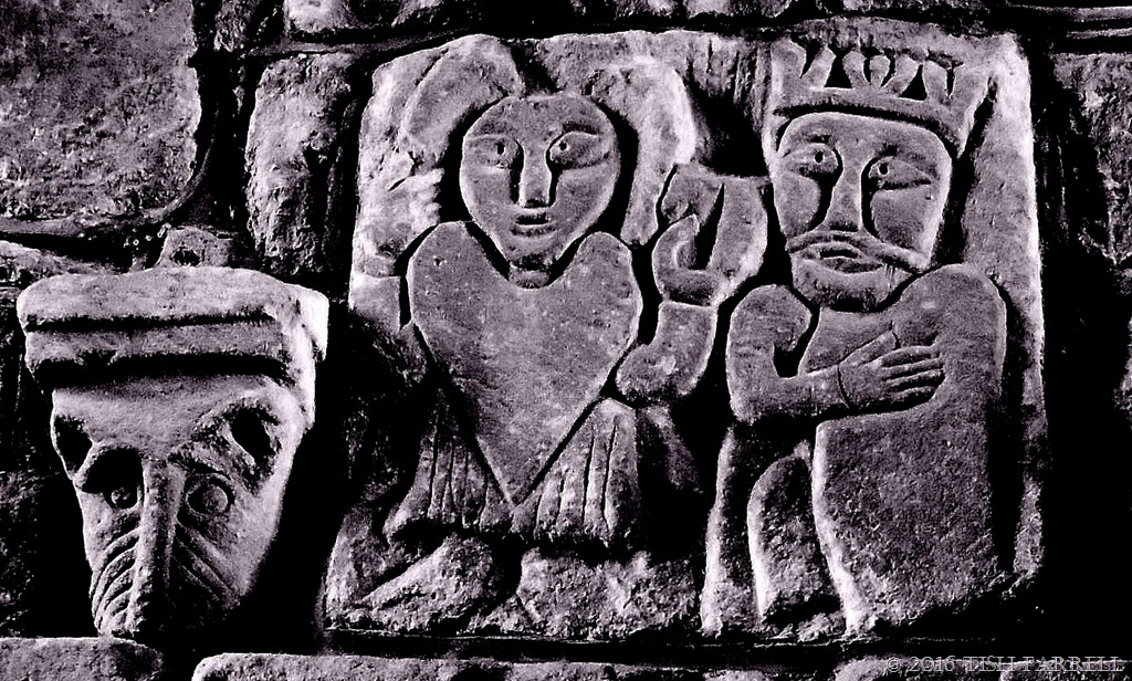 These Saxon carvings in Wirksworth’s St. Mary’s Church in the Derbyshire Peak District are around 1,300 years old. They appear to have been randomly placed in the walls during the rebuilding of the church during the thirteenth century. Nothing more is known about them, or of their precise age and origins.