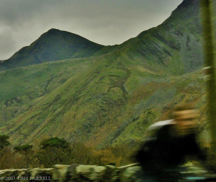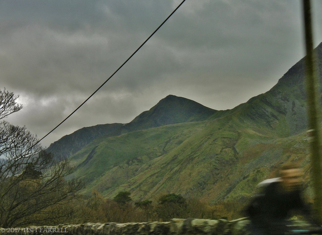Nowhere does brooding gloom like Wales on a wet winter’s day. This happenstance shot was taken on New Year’s Eve as we were motoring home from Anglesey. I’d propped my camera briefly on the car dashboard as we’d headed through the mountain pass to Capel Curig. Then randomly pressed the shutter and so caught the cyclist.