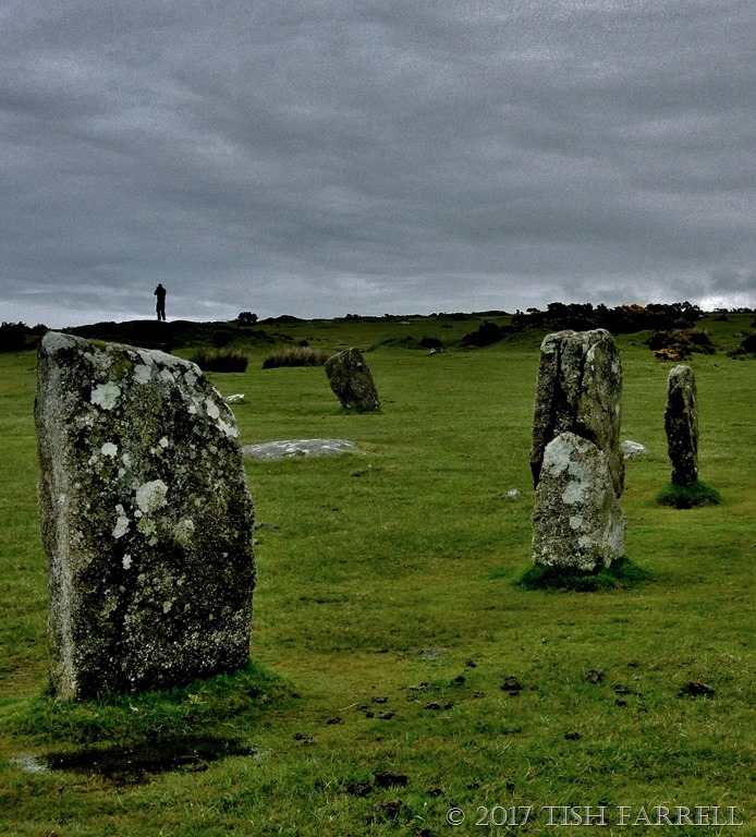 The local explanation for the origin of these stones is that they are petrified men – turned to stone in punishment for playing hurling on a Sunday. (Cornish hurling is an ancient team game played with a silver ball. See the link for more details. And no, I don’t think that is an ancient hurler on the skyline).
