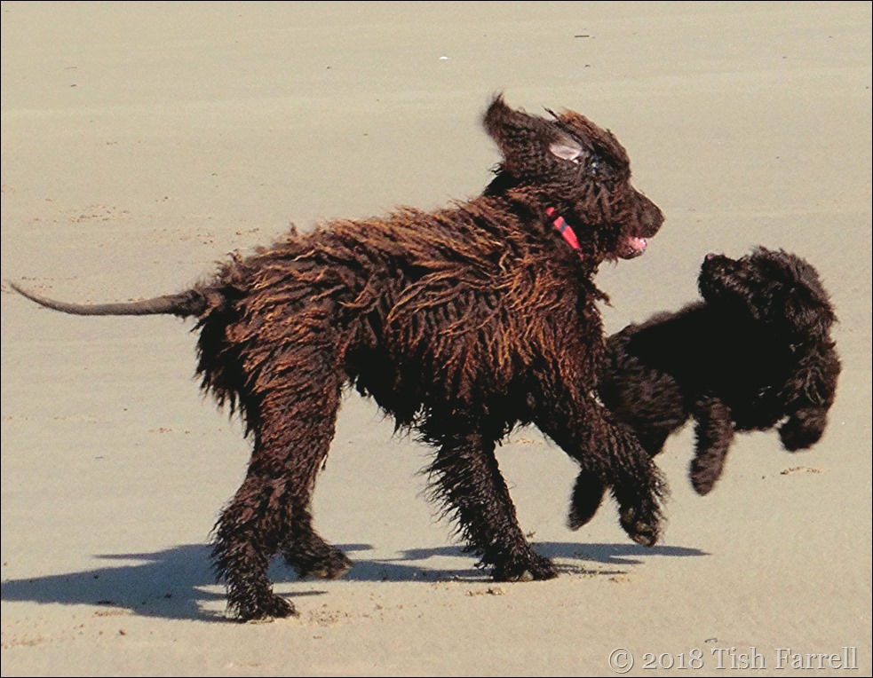 They were complete strangers too. The large poodle-cross spotted small cockapoo from across the bay at Marloes Sands (see previous post) and made a bee-line for her. It seemed a case of like recognising like.