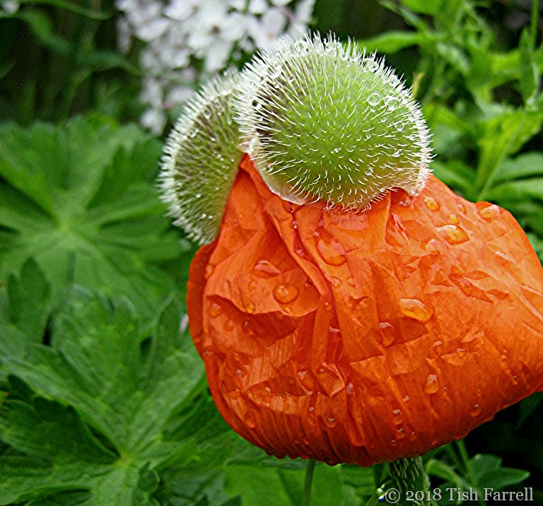To be honest I’m not too fond of this particular shade of oriental poppy – essence of Heinz Tomato Soup. It was already a garden resident when we bought the house, and although I keep digging it up, it seems determined, not only to stay, but to multiply. Anyway, I like its chutzpah, if not its colour. I can always be sure it will pop up somewhere to annoy me. Then I think, oh well. At least the bees love it. And who can gainsay such show-off vim and vigour.