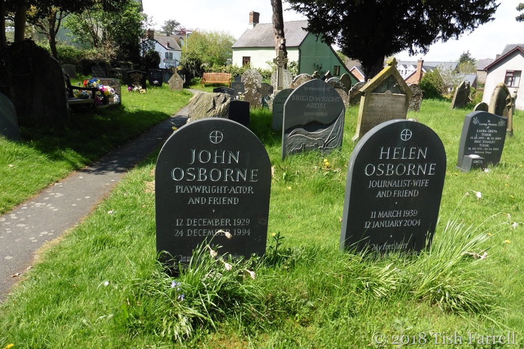 But I forgot to look for him at the parish church of St. George, our next stop up the hill from the cafe. I was too diverted with other finds there. Most particularly the graves of playwright John Osborne and his journalist wife, Helen Osborne. John Osborne blazed into the theatrical world with Look Back In Anger (1956) and The Entertainer (1957) changing British theatre forever. In fact he changed the air we breathed in post-war England, especially in the sixties when his plays were often performed. We grew up questioning establishment mores. These were the days of activism.