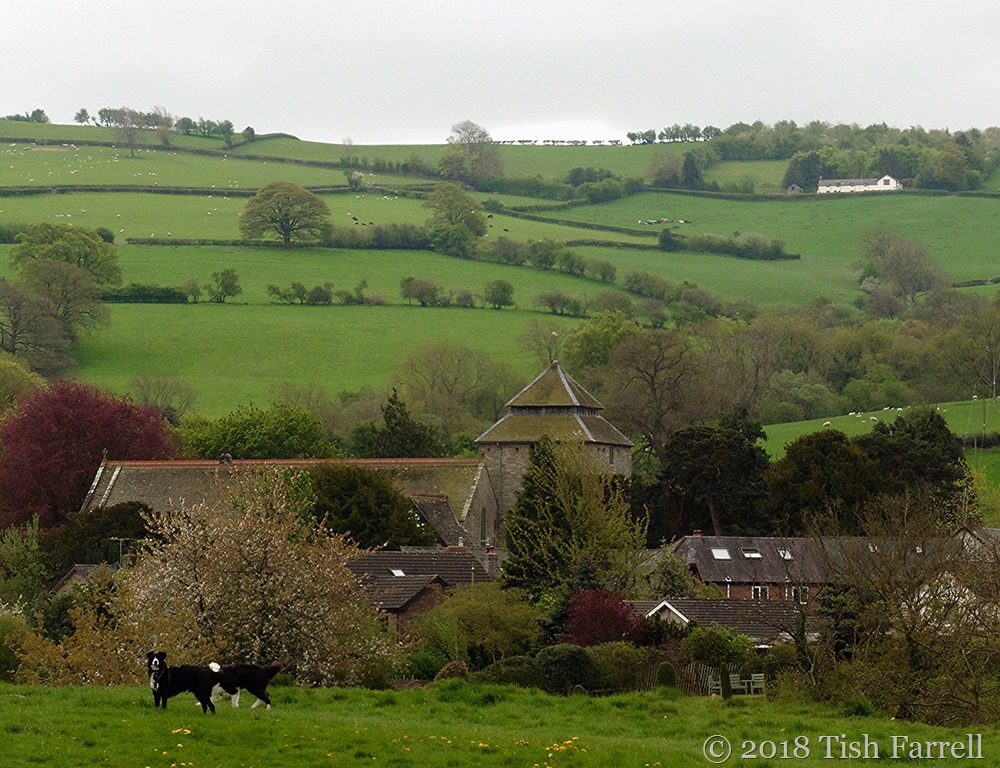 And with this final very green view of the Clun Valley and of St. George’s church, Dr. and Mrs. Farrell hotfooted it back to the car before it started to rain.