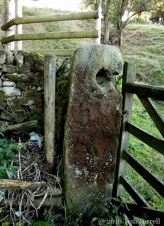 In the last post I queried the large perforations to be found in the tops of some Derbyshire stone gate posts or stoops. I thought they made handy viewfinders, but could find no other explanation. Then I found some more photos I’d taken at Callow Farm. These are a pair – one with a partial orifice, the other without.