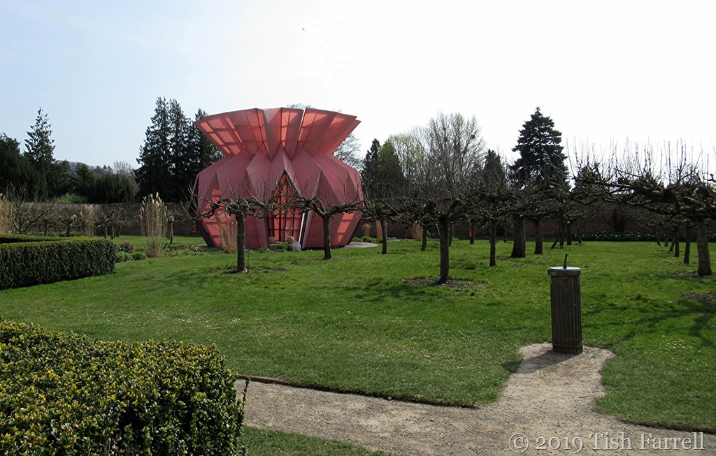 April 1st, All Fools Day, and it flitted through my mind that it was just the day for paying the pink pineapple pavilion a second visit. It was anyway a piece of happenstance. We were driving back from the Malverns and the need for lunch was pressing. And, since you can pretty much rely on a National Trust property for a decent snack, we decided to call in at Berrington Hall.