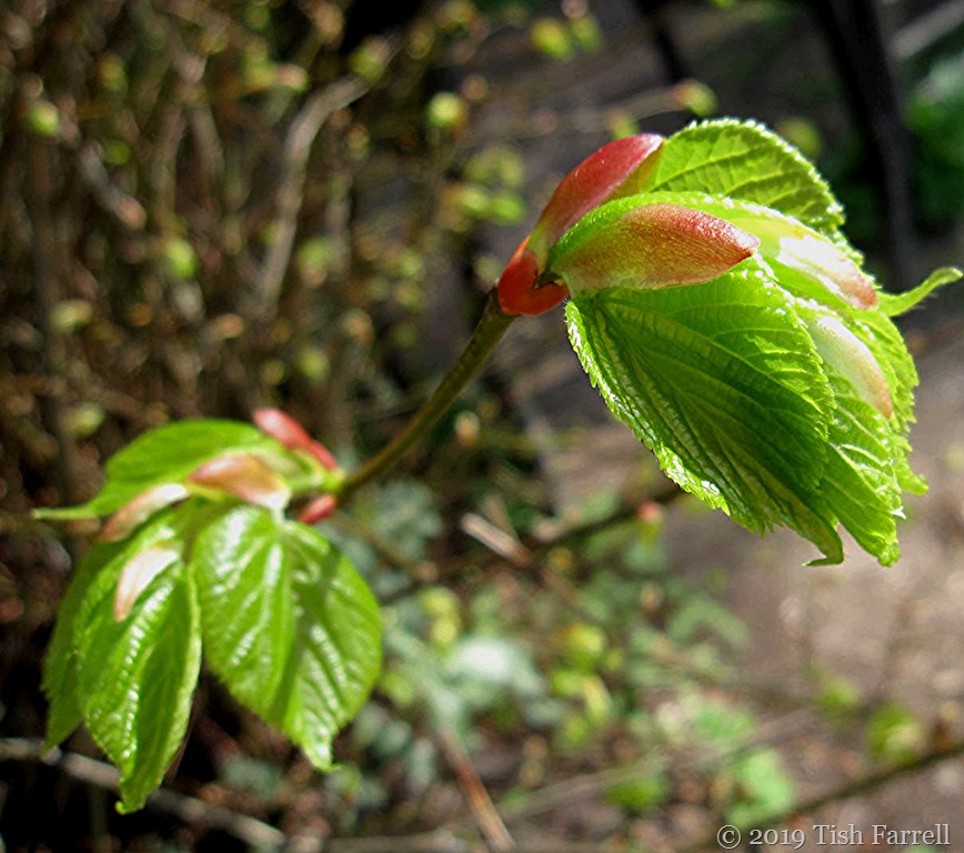 We’ve had three seasons this April – spring, summer and winter, some frost, lots of cold wind, a week of barbeque weather, more wind (thank you Storm Hannah), but no April showers, or at least only a couple of days’ worth. And now spring is back and we have leaves – lots and lots in their best, shiniest, juiciest green. In the last ten days the Linden Walk has turned from this: