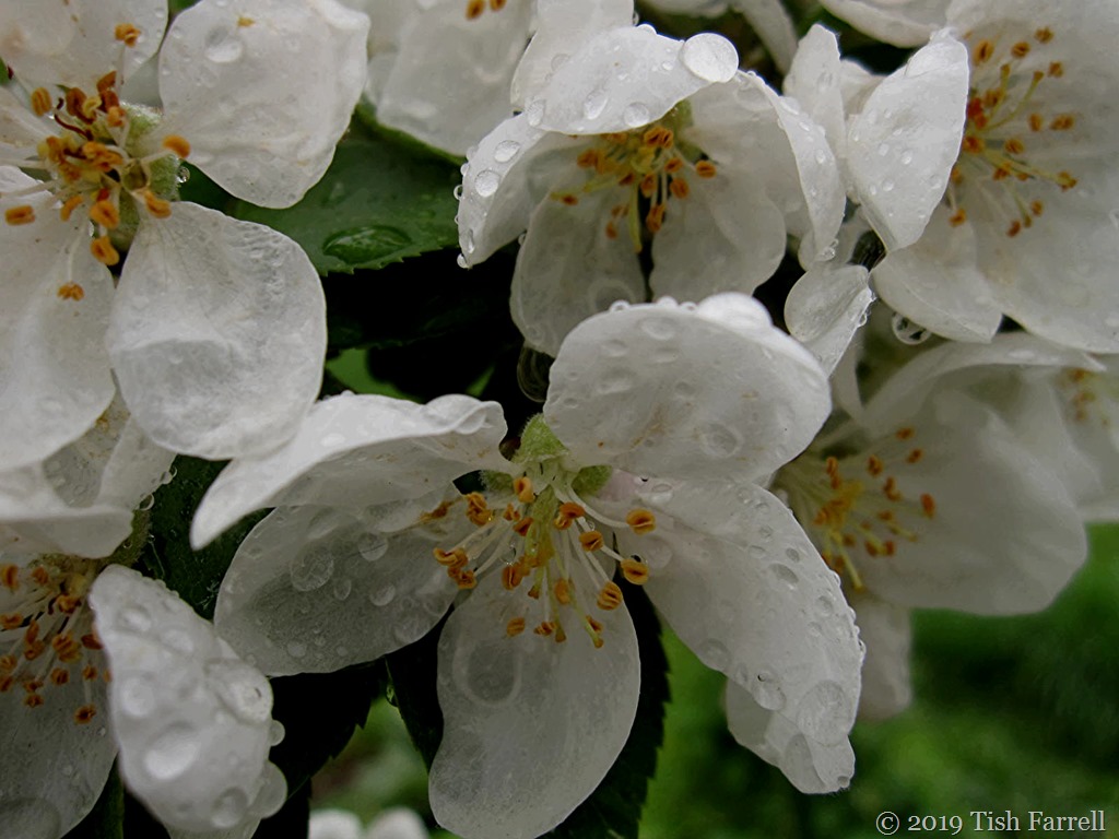 And that’s what happened here today, spot on 2 pm just when the weather forecast said it would, and after several weeks of drought. I’d just made it back from the allotment where I had been moving raised beds, making new terraces and breaking up compacted soil in readiness for the promised rain. On the way home, draped in emergency polytunnel mac – a somewhat scabby garment I have to say, I noticed how the blossom on the crab apple tree by the garden gate is already going over, and I had only posted its picture the other day, the flowers so pink and freshly unfurling. Today the petals are white and shedding, here and there revealing the makings of miniscule apples on their stems. The procreative imperative in full swing then, which naturally induced a fit of gardener’s panic, a feeling that somehow I was lagging behind. So much to do, and so little time.