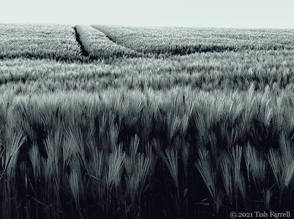 We’ve gone Mediterranean in Wenlock this week with temperatures hitting a surprising 30 degrees C. Here is this morning’s view of Townsend Meadow and the well ripening barley, caught as I was heading for the allotment on a pea and raspberry-picking mission.
