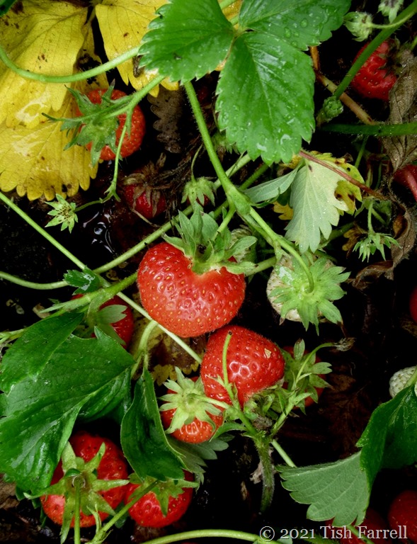 Anyway now is suddenly the season of concerted picking and consumption (peas, strawberries, new potatoes, cauliflowers, broad beans, beetroot, carrots, lettuce, onions, globe artichokes, Sun Gold tomatoes, courgettes); and also the moment when many crops are shifting gear towards later production mode: French, butter and runner beans, sweet corn, cabbages, parsnips, leeks, purple sprouting. All of which means there is much change in Farrell eating habits (another kind of getting away) as produce dictates meal content. Today, for instance, we had globe artichokes for lunch with garlic butter – and so we might well have been in France. Later we’ll have new potatoes with steamed broad beans, peas, and crispy bacon lardons. There may well be strawberries too.