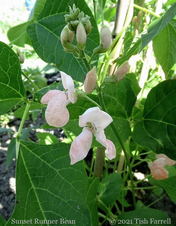 This year I’m growing a late variety of runner beans not tried before. Today the blossom was just opening – a lovely shade of pale apricot. It’s aptly named Sunset.