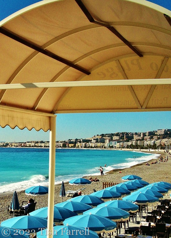 The Promenade des Anges beside the glimmering Mediterranean seems a good place to start – glorious under the sun even in late October. And what could be more cheering than an azure avenue of beach brollies…