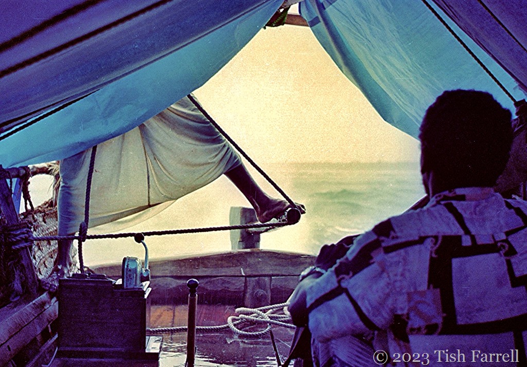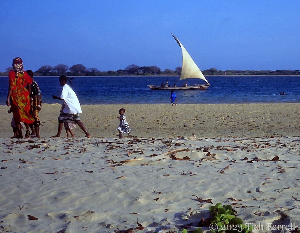 Once, a long time ago when we were living in Kenya, we spent Christmas on Lamu Island. I wrote about our brief stay HERE.  It seemed like a dream when we were there. And here in this photo (posted a few times before) Mzee Lali, dhow captain, also dreams, the late-day breeze bearing us along the Manda Strait back to Shela village.