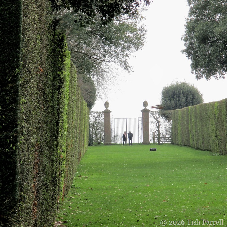 There was an amusing sighting though. I stopped to take a photo of the couple at the gates, and then realised they were watching a little robot lawnmower trundling back and forth between the hedges. It seemed to have its work cut out: