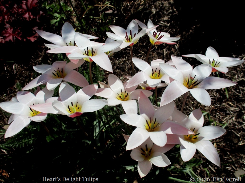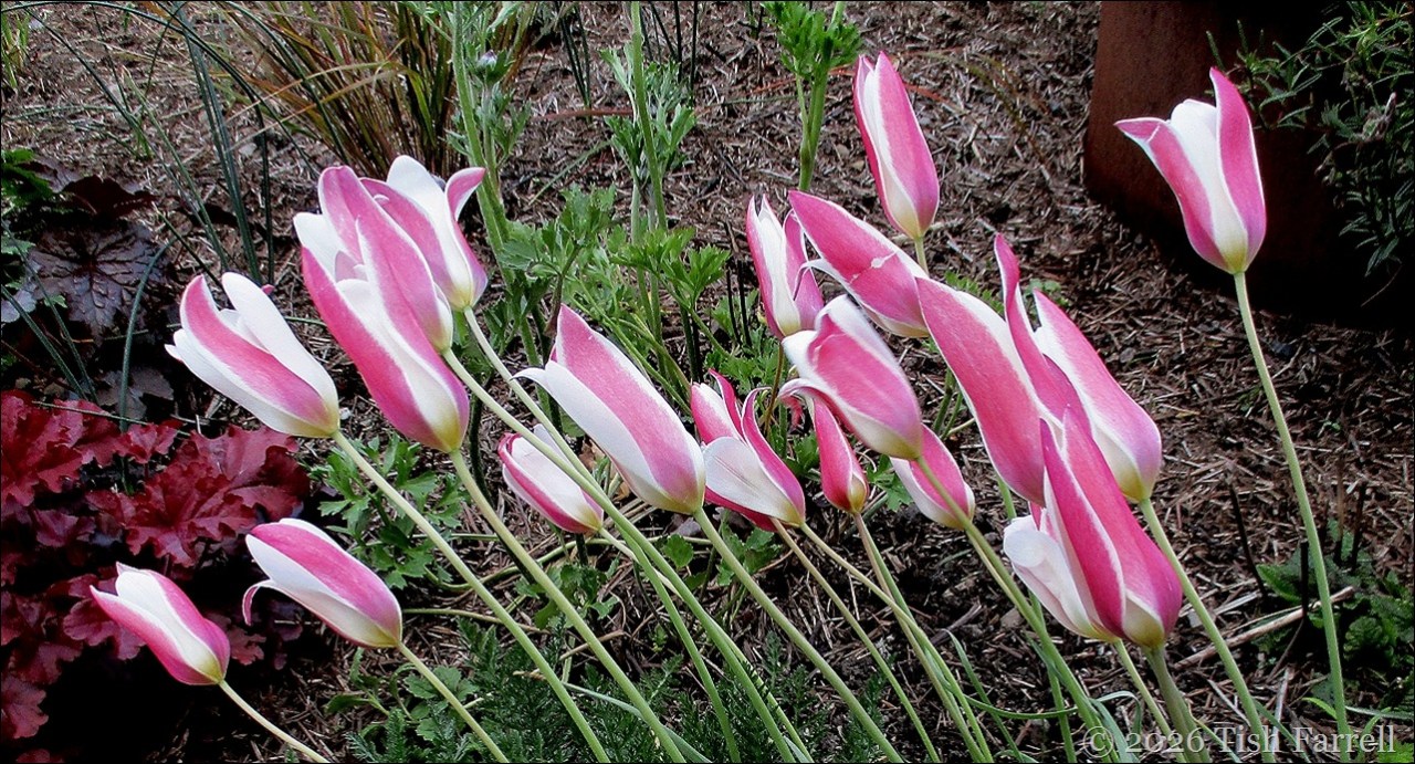 Also we could have done without the gale last Saturday. More of which in a moment. But first, the garden stars of the past two weeks have been these lovely little front garden tulips, Heart’s Delight (1). They have stood up to being roasted and thrashed, but I fear they won’t last today. As I write this, we’re having a hail storm and fierce sleety gusts. Most of their petals have already blown off.