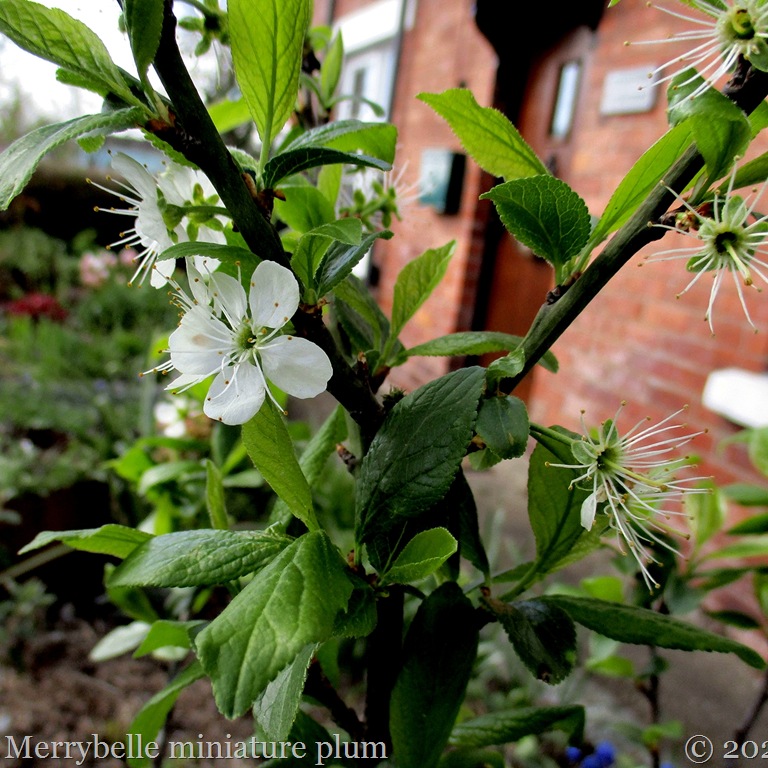 We also have 2 dwarf eating apple trees and a little Stella cherry on the top of the terrace wall, and in the front garden, two small crab apples (Evereste and upright Laura both about to flower), and a Merrybelle Plum, which is just over.