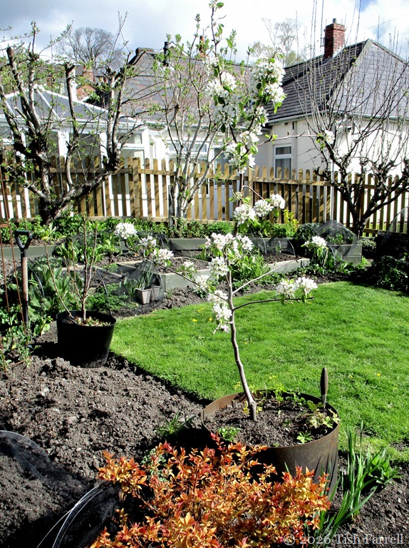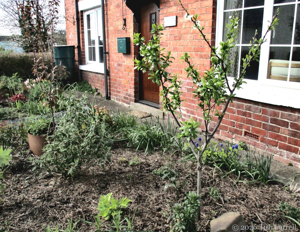 My thinking with the little trees is that we and the pollinators have the pleasure of the spring blossom (and maybe also some fruit come autumn), but they leave lots of room for the late spring and summer show of herbaceous perennials. And if we lose sight of them for a while among the phlox, rdbeckia and Michaelmas daisies it doesn’t really matter.