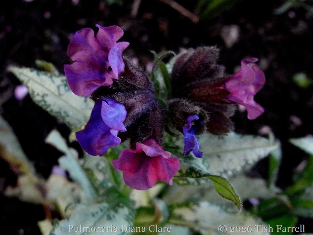The weather may be changeable and bitterly cold (even by English standards) but there have been plenty of sightings of butterflies: orange tips, tortoiseshells, Common Blues. I’ve also noticed bumble bees, especially in the Pulmonaria (lung wort) flowers. Diana Clare (4) with her striking silvery leaves, is a new plant bought last year, so I’m pleased to see she’s settling down, and especially after the pigeons snaffled her first leaves.
