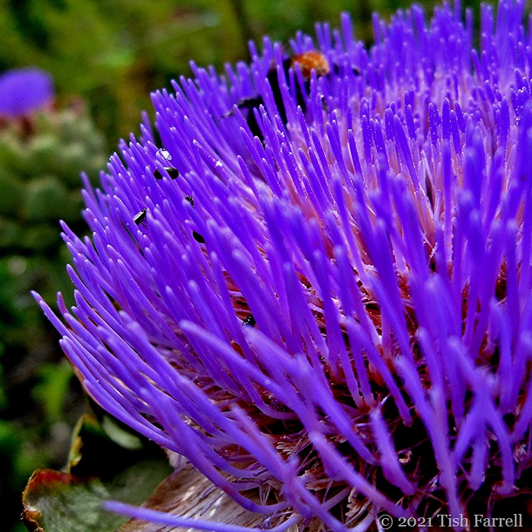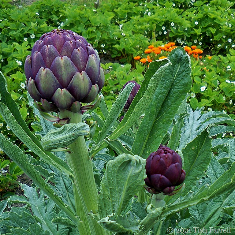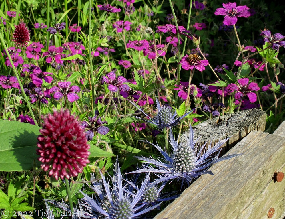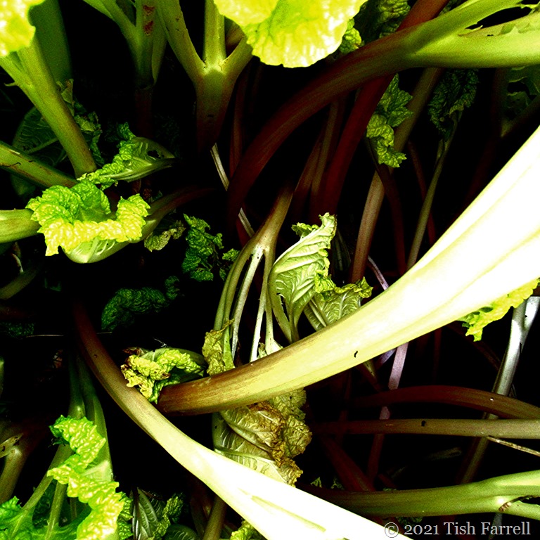 But then came the sunshine, and I needed leeks and herbs for the risotto I’d planned, and also salad stuff to go with it. And then there was the vegetable waste to take up to the compost bins. So I set off, though not before I’d grabbed a stick to avoid an undignified up-ending along the field path. (Done that: got the muddy bum to prove it).