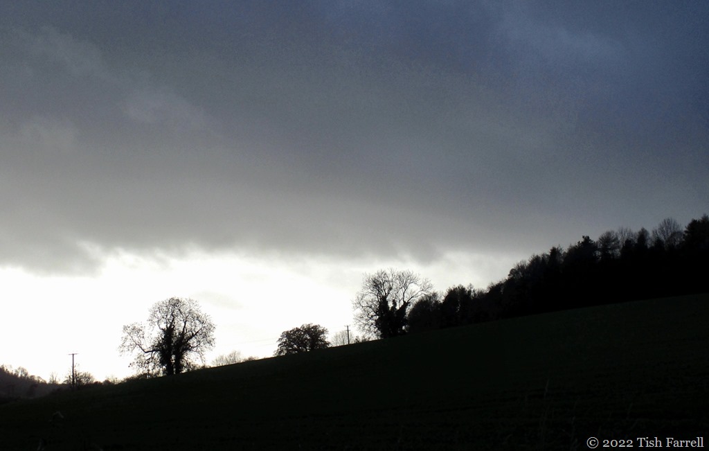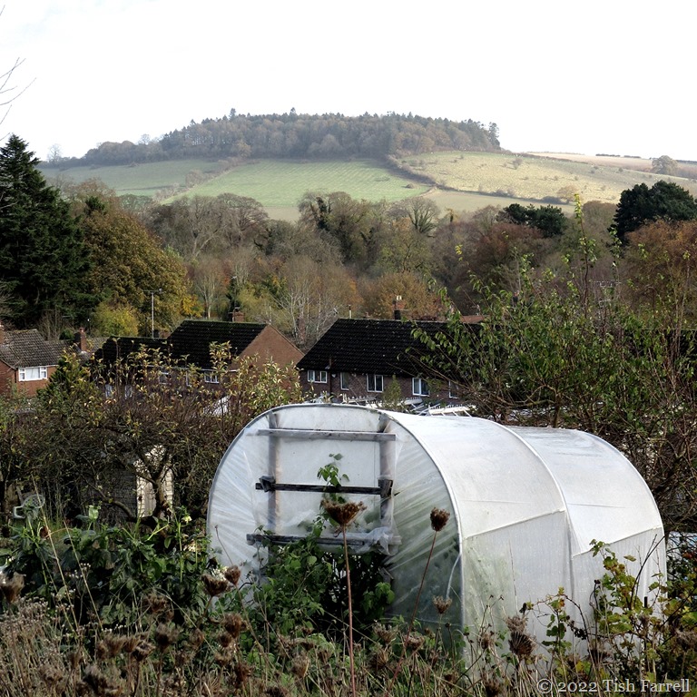 …it started to rain. A blanket of wet mist descended and I headed home, though not before taking the header photo, snapped because somehow the drizzle made everywhere look gauzy. But by the time I reached the garden gate the light had gone and the rain set in. I turned back to scan the field: dusk at lunchtime? I really do not remember a November with so much day-time darkness. Nor a month that has gone so fast: not so much walking as galloping.