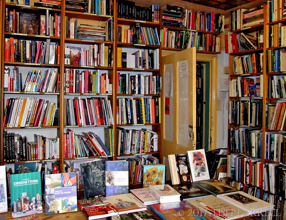 The bookshop was once voted the 6th best in the world and, in  the forty odd years since it began, it has become a landmark and institution in the small Peak District village of Cromford. And if that name rings a bell, then it is the place where in 1771 Richard Arkwright built his cotton mill, thereby bringing us the factory system and all that went (still comes) with it. But please overlook that bit of unsavoury orientation. Overbearing capitalism is not the atmosphere one finds in the bookshop. Far from it. You can tell that, can’t you – even before you set foot inside.