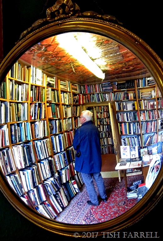 And no, the place isn’t haunted by the ghosts of bibliophiles past, at least I didn’t meet any while I was there. That’s me caught accidentally in the mirror, and with a daftly blissful look that reminds me of the Bisto Kid adverts wherein lads do much paradisal sniffing of delicious aromas. And of course books have their own parfum – from  well used and hypnotically musty to freshly pressed. So why would I not be looking happy in Scarthin Books? This well known Derbyshire emporium has 100,000 thousand volumes, old and new – spread over three floors (often literally) and stacked up to the rafters in 13 rooms.
