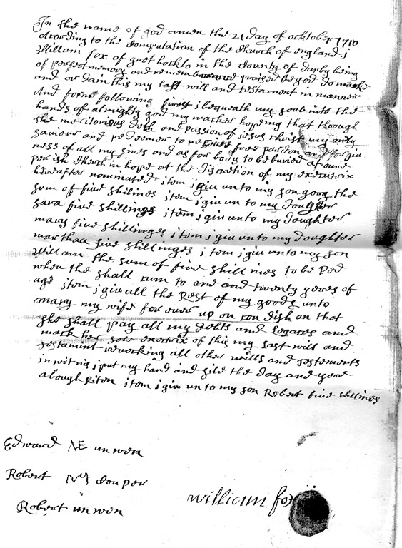 William Lister died in 1889, aged 76. He seems to have left no will, but was buried with his first wife in Burngreave Cemetery in Sheffield. The 1891 census has Sophia in Water Lane, Bradwell, a lead-mining village some miles from Hathersage. She is listed as living on her ‘own means’. In 1892 in her 78th year and a matter of days before her own death of acute bronchitis, her will is drawn up. She is clearly too ill to sign it with more than ‘her mark’. She leaves everything to her two brothers, George Brayley Fox of Callow, (my great great grandfather), and his younger brother, William.
