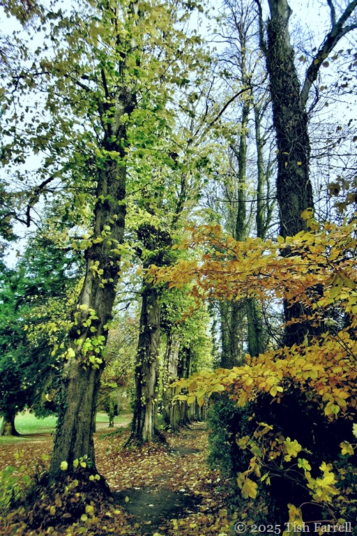 These are the last photos from our Friday day out to Mellington Hall, caught in a brief burst of sunshine. The far glimpse of two swans across the lake had magic in it – a gentle scene for All Hallows’ Eve.