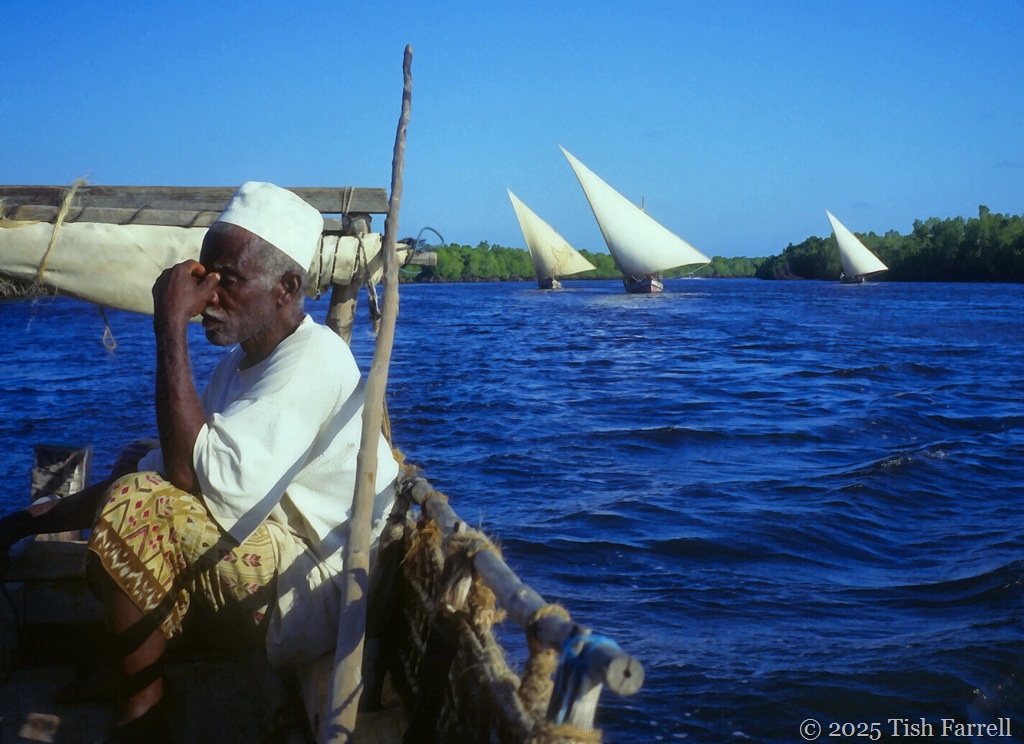 And a third sea-serenity scene: another December, this time long ago, a tropic summer afternoon on the Manda Strait; Lamu, dhow captain Mzee Lali dreams.