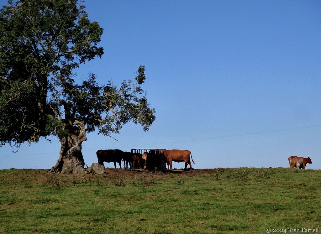 Barn roofs, gates, styles, fence- field- crop- and power-lines, pylons and pole shadows. Oh yes, and some bull rushes…