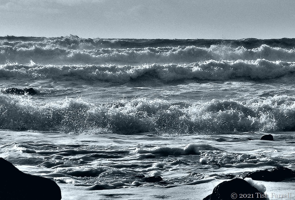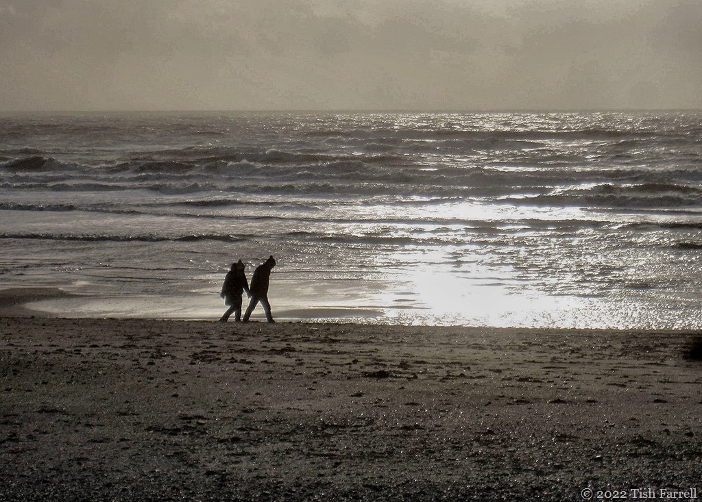 The last Sunday of 2019 and a piercing wind is blowing on Anglesey’s Newborough Beach – the sort that knifes through all clothing defences and finds every millimetre of exposed flesh. Brrrr. By lunchtime it is growing dark too, or perhaps day never quite dawned properly. It’s anyway a big change after the entrancing blue of Christmas Day. But we are not put off: Newborough Beach is a favourite winter walk so we trundle through the high dunes to the shore, as ever joining a mass of promenading families and dogs, and face the elements. The wind takes our breath away.