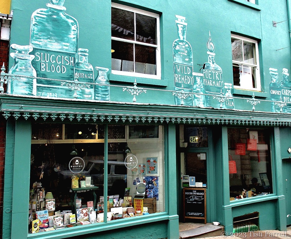 Masefield is also well loved (and especially by me) for his children’s book ‘A Box of Delights’. I especially treasure his word ‘scrobbled’ meaning to be nabbed by the baddies. But now for some Ledbury views, including a glimpse of the writer himself, discovered in a quirky alley leading to the town Printers, who advertise themselves around the place with amusing posters. A town of delights then – old and new: