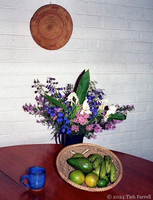 Produce including delphiniums and ginger lilies from the local co-operative on Sable Road
