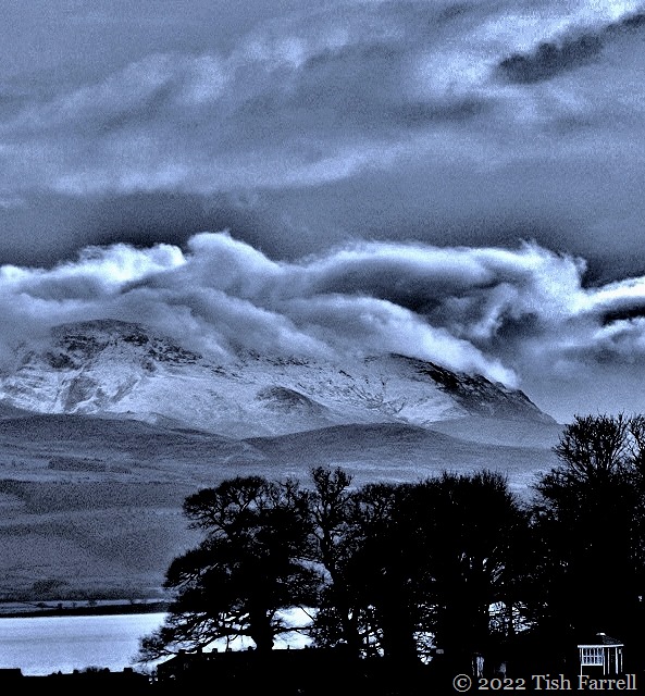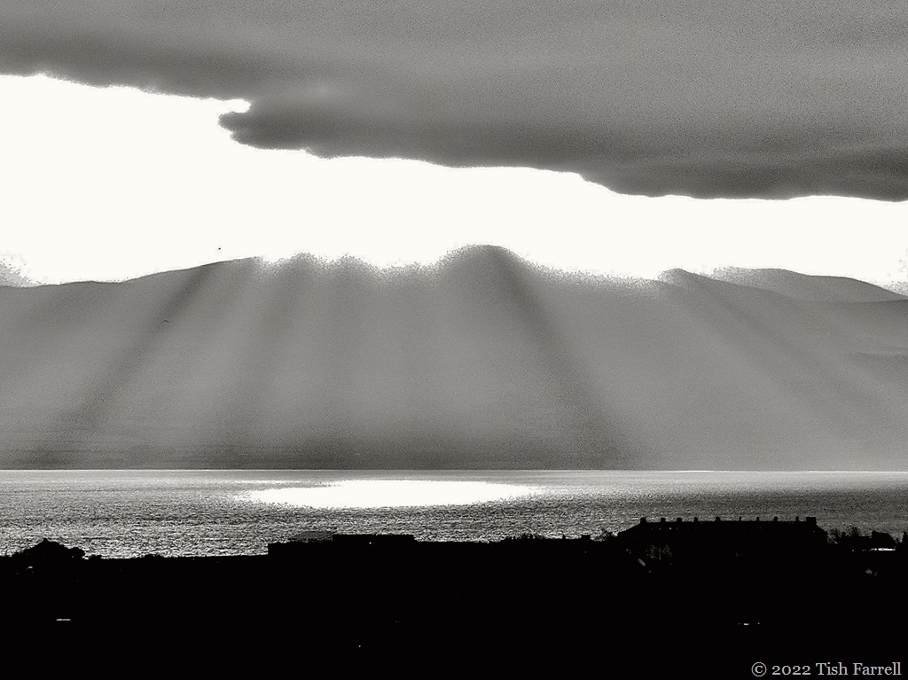 But for the Druids – the seer-diviner-lore-keeper-law-makers of the community, I tend to wonder if it wasn’t the island’s more extraordinary characteristics that they drew on. The quality of the light for one, and especially in winter when the sun over sea and strait and mainland mountains creates some mesmerizing effects, even when caught in monochrome.