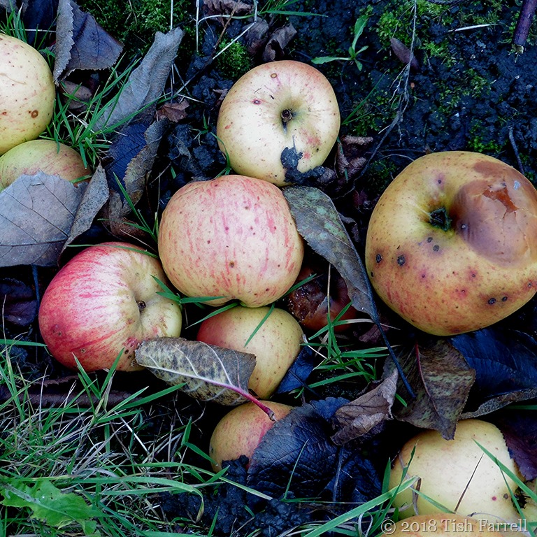 Now when it comes to apples, both wild and cultivated, it’s a whole new story. Here is the crab apple tree in our back garden. The fruit is tiny, but what a crop. I’ve never seen this little tree so laden: enough to make crab apple jelly and leave plenty for the over-wintering birds.