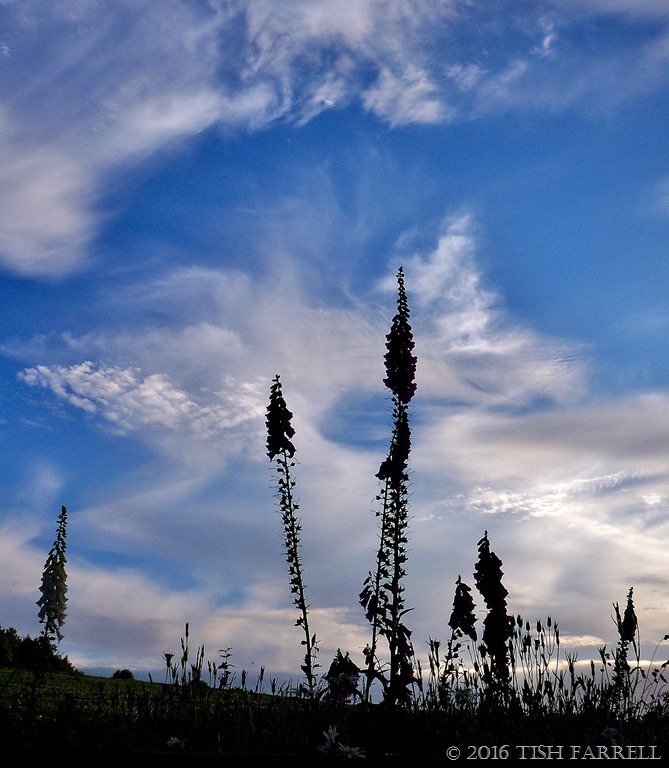 This week Paula’s asks us to show her a black & white photo and the colour original from which is has been converted. This is another ‘over the garden fence and across the field’ shot – sundowner foxgloves and corn cockle seed heads.
