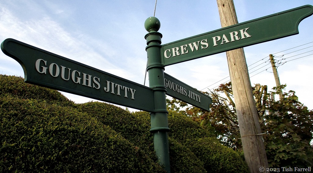 As I said, Gough’s Jitty runs crosswise from Crews Park, and following the south westerly end along the saggar wall you soon collide with Mission Jitty heading north east. Near the intersection there’s a delightful ‘farmyard’ filled with fun activities: swings, coops, rails and ponds, for ducks and hens. You can buy the eggs too (honesty box provided). The hens came hotfoot to the fence when they saw me: