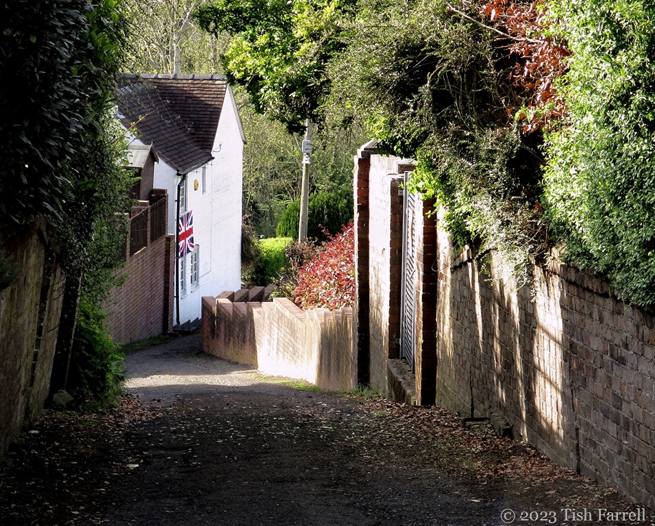 There are seventeen jitties, most of them cross-paths between more substantial lanes and each named after individuals, wells or particular landmarks associated with them. We began this particular exploration at Crews Park Jitty, hiving off Woodlands Road not far from the town May Pole.