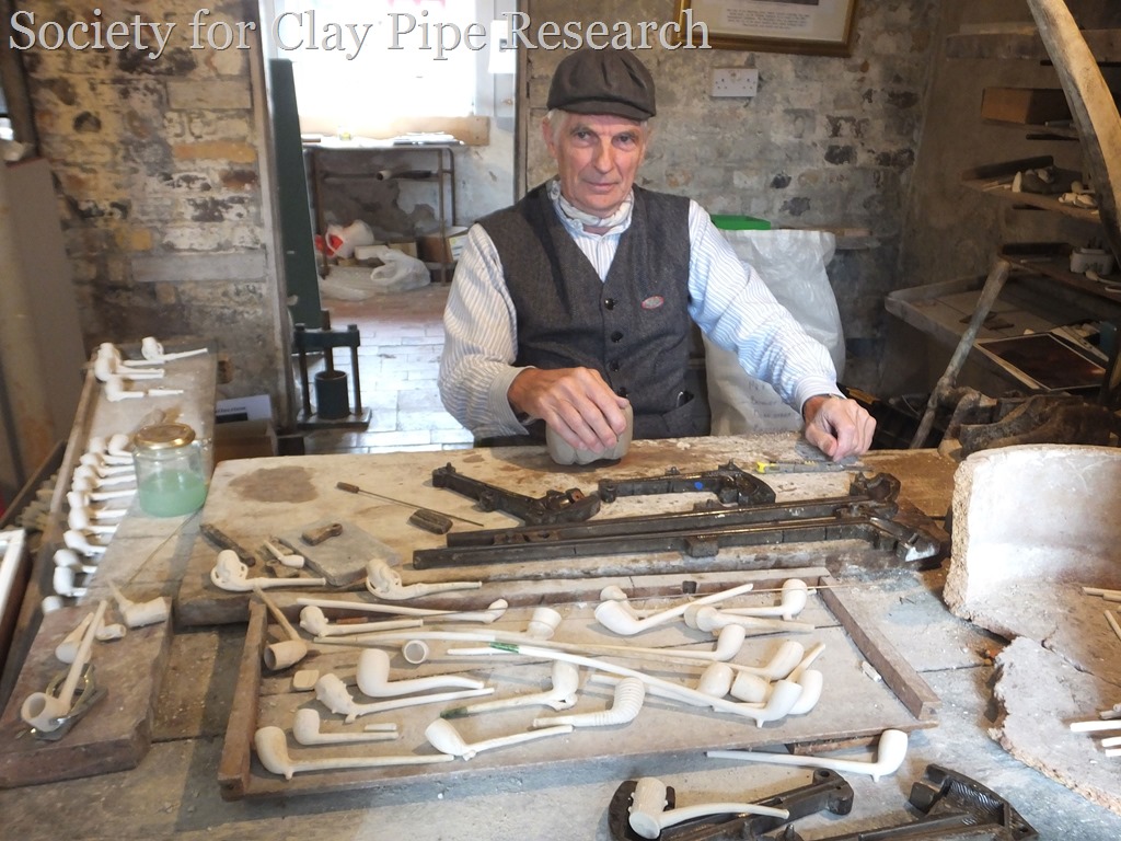 Pipe-maker Rex Key demonstrating his skills at Broseley Pipe Works Museum.