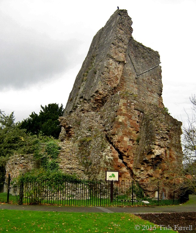If you then turn through 180 degrees and look up the garden, you are now facing the spot where the inner bailey gatehouse would have stood. I’m thinking the huge ash tree makes a handy simulacrum for a castle tower: