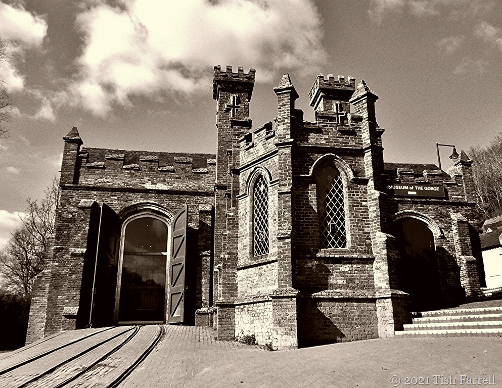 Which could well be this, the Coalbrookdale ironmasters’ riverside warehouse (built in Gothic style), the point from which their cast iron goods (especially cauldrons) were exported downriver to the wide world: