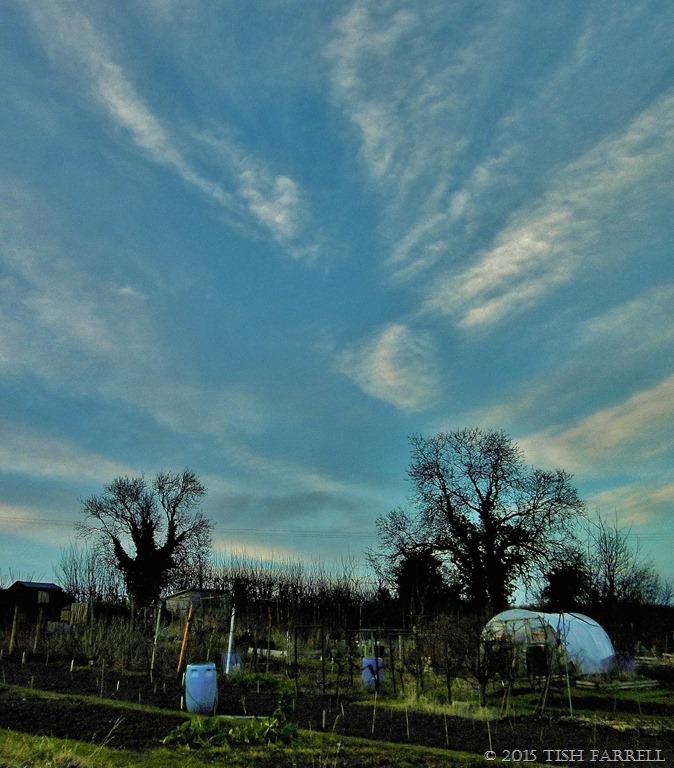 And so I can report that all on the plot is presently going (roughly) to plan. With the advent of rain last week came the planting out of leeks, sweet corn and assorted caulis and cabbages, Cherokee climbing beans, dwarf French beans, courgettes and squashes. Potatoes have been earthed up, and compost bins emptied and replenished with scavenged vegetation. Butter and runner beans that had been planted out earlier but then had to be sheltered from gale force winds have had their protective covers removed and the climbing pea and seedling asparagus beds have been mulched.