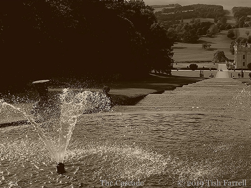 Thereafter the heirs sought and bought titles, including the Earldom of Devonshire, and it was the 4th Earl who gained a further step up by being rewarded with the dukedom (1694) – this for his part in bringing Protestant William and Mary to the English throne. It was also  the 1st Duke who went in for some massive rebuilding, including most of what we see today. He began by adding more family rooms and the extravagant State Apartment for receiving the new monarchs. Once started, however, no frontage could be left untouched. He also had the formal gardens laid out on a jaw-dropping scale. This included the famous Cascade, though he lived to enjoy its creation for only four years after its completion in 1703.