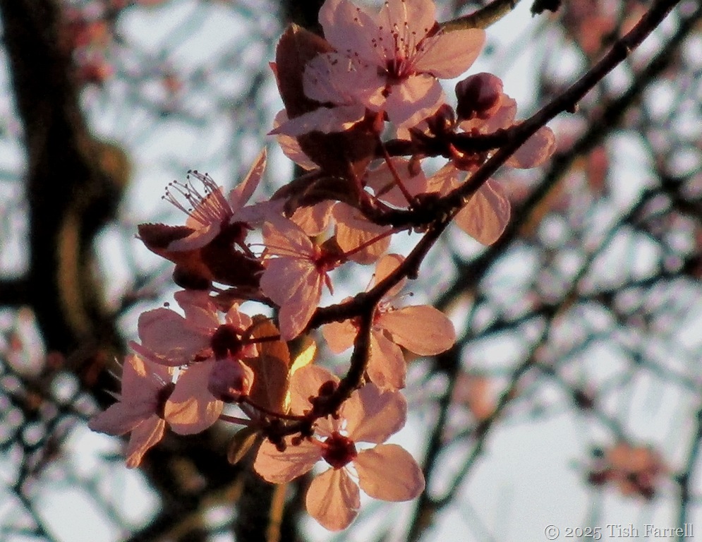 So much for all the talk of this spring being sooner and warmer etc etc than other springs. Not so in Bishop’s Castle. After the week of warmish weather, the polar vortex is now rolling out cold, cold air day after day, and the cherry plum’s impulse to flower feels arrested somehow. But then that’s alright. A slow flowering will be just fine.