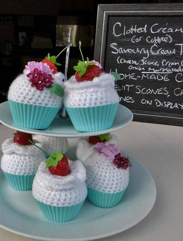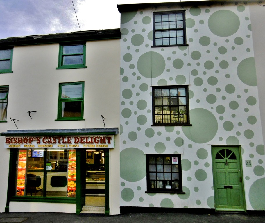 Here then are scenes of Bishop’s Castle. It is a town with a very long and steep high street – a handsome church at the bottom, a fine town hall at the top, and ancient hostelries brewing their own ale at either end. And from every quarter, whenever you look down a main street you can see out to the countryside beyond. The best of all worlds then. I’m leaving the photos to speak for themselves, apart from saying, look out for the crocheted fairy cakes: they almost look good enough to eat. Oh yes, and there’s a shot of me with my best and only sister, Jo, in the garden of the Castle Hotel.